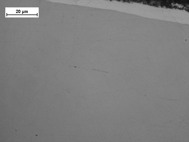 Dabei konnten bereits in unverdichteten, nicht ermüdeten, aus dem Seil entnommenen Drähten Defekte in Ziehrichtung gefunden werden, die durch einen späteren Verdichtungsprozess ggf. zu lokalen Trennflächen (Delamination) führen können (vgl. Abbildungen 9 bis 11). Bereits bei früheren Umlaufbiegeversuchen in den 1970er Jahren am Institut für Bergbausicherheit Leipzig wurde aus Längsschliffbildern festgestellt, dass wahrscheinlich die ungenügende Schubbindung in der Ziehstruktur zur Ermüdungsrissbildung von innen heraus auch bei geringeren Biegebeanspruchungen führte. Dies wurde nicht weiter verfolgt und dokumentiert.